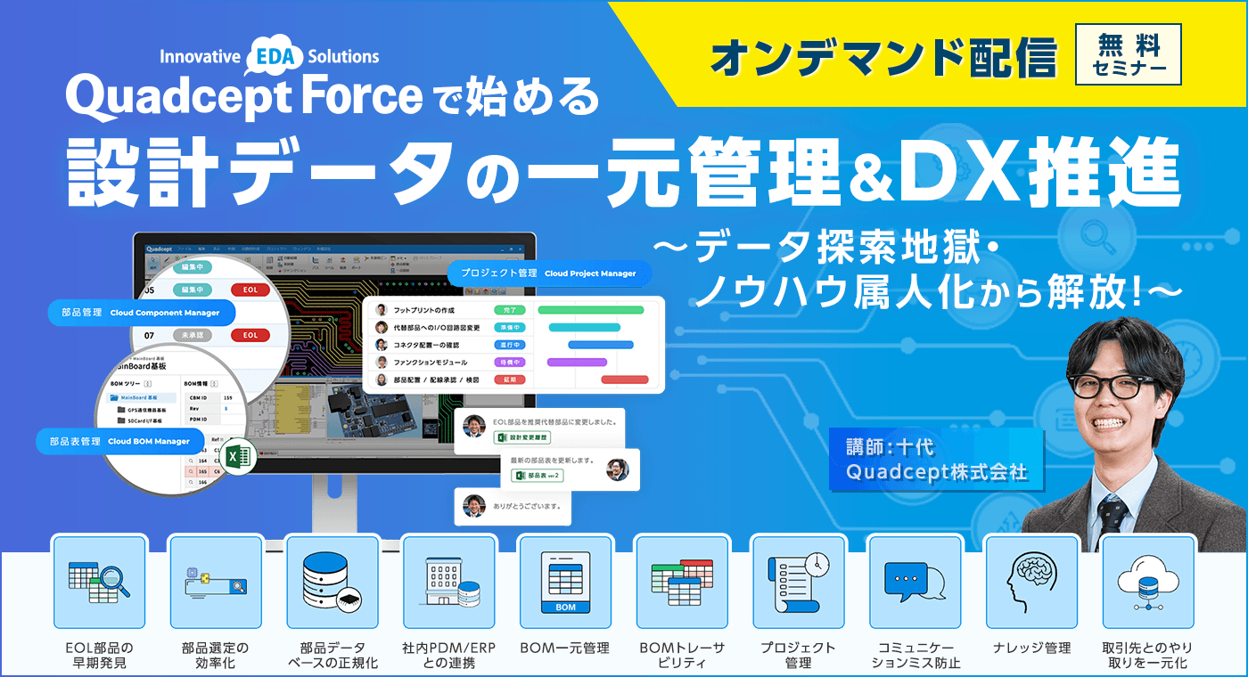 セミナー名 | Quadcept Forceで始める 設計データの一元管理&DX推進 ~データ探索地獄・ノウハウ属人化から解放!~ |